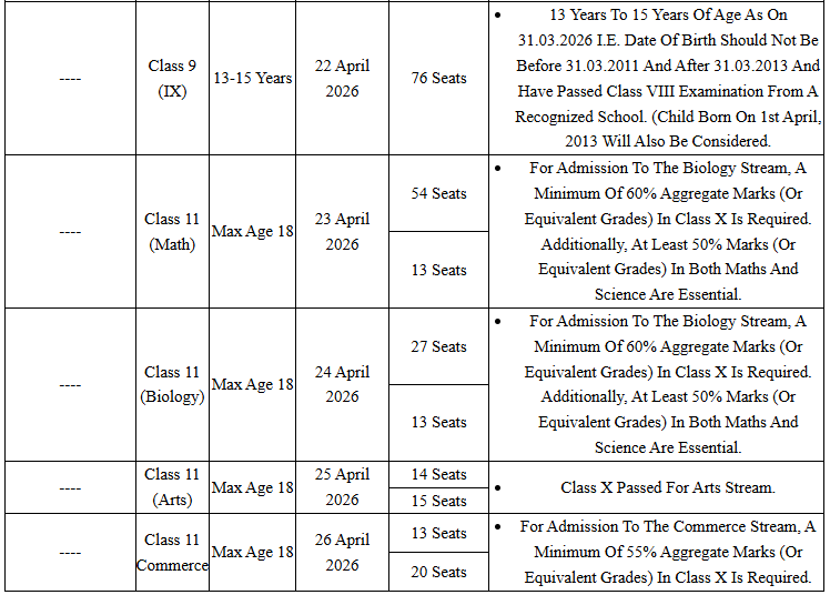 📝 प्रवेश परीक्षा के माध्यम से (कक्षा 9 एवं 11) -