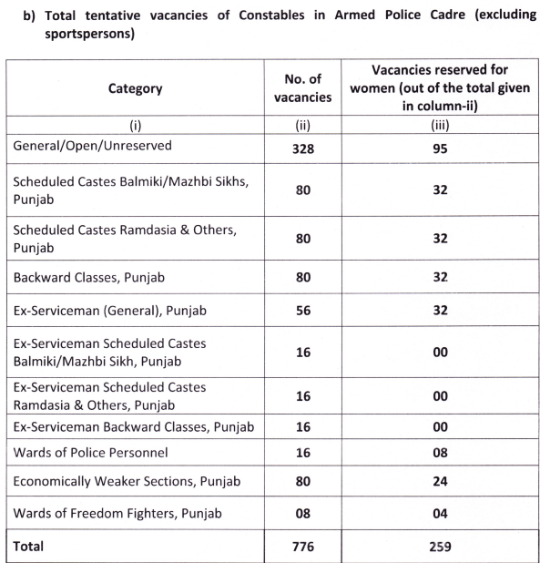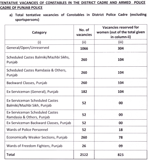रिक्तियों का विवरण - पंजाब पुलिस के अधिकारिक विवरण के अनुसार इस प्रकार है -