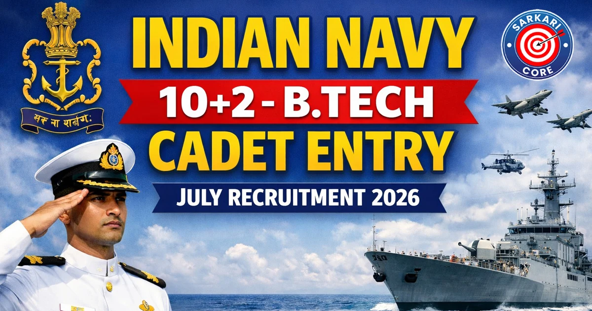 भारतीय नौसेना (नौसेना भर्ती) ने जुलाई 2026 बैच के लिए 10+2 (बी.टेक) कैडेट प्रवेश योजना के तहत उम्मीदवारों की भर्ती हेतु आधिकारिक अधिसूचना जारी की है। इस भर्ती प्रक्रिया के माध्यम से कुल 44 रिक्तियां उपलब्ध हैं। ऑनलाइन आवेदन प्रक्रिया 3 जनवरी 2026 से शुरू हुई और पात्र उम्मीदवार 19 जनवरी 2026 तक अपने आवेदन जमा कर सकते हैं। आवेदकों का जन्म 2 जनवरी 2007 से 1 जुलाई 2009 के बीच होना चाहिए। इच्छुक उम्मीदवारों को सलाह दी जाती है कि वे नीचे दी गई भारतीय नौसेना 10+2 बी.टेक कैडेट प्रवेश जुलाई 2026 भर्ती से संबंधित संपूर्ण पात्रता मानदंड, चयन प्रक्रिया और अन्य महत्वपूर्ण विवरणों की सावधानीपूर्वक समीक्षा करें।